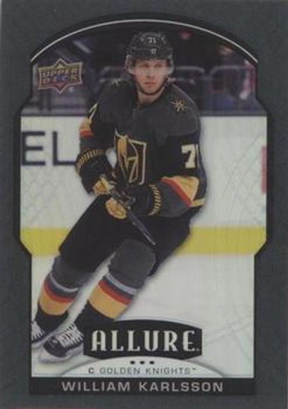 The William Karlsson 2020 Upper Deck Allure #24 Black Rainbow card is 1 of 31 William Karlsson's card variations in the 2020 Upper Deck Allure set being tracked by Sports Card Investor, including Base, 2005 Shield, Blue China, Leopard, and Magenta.