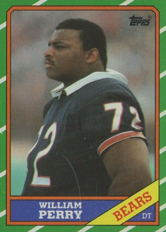 William Perry's Football cards are available in at least 21 sets. William Perry's biggest 7-day price movers are 1986 Topps #20 Base, 2005 Topps Heritage #F-WP Flashback Relics, and 2001 Topps Archives Reserve #ARA-WP Rookie Reprint Autographs.