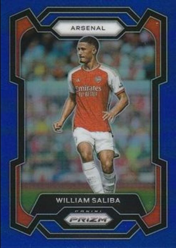 The William Saliba 2023 Prizm Premier League #21 Blue /299 card is 1 of 63 William Saliba's card variations in the 2023 Prizm Premier League set being tracked by Sports Card Investor, including Base, Blue Mosaic, Breakaway, Breakaway Orange, and Choice.