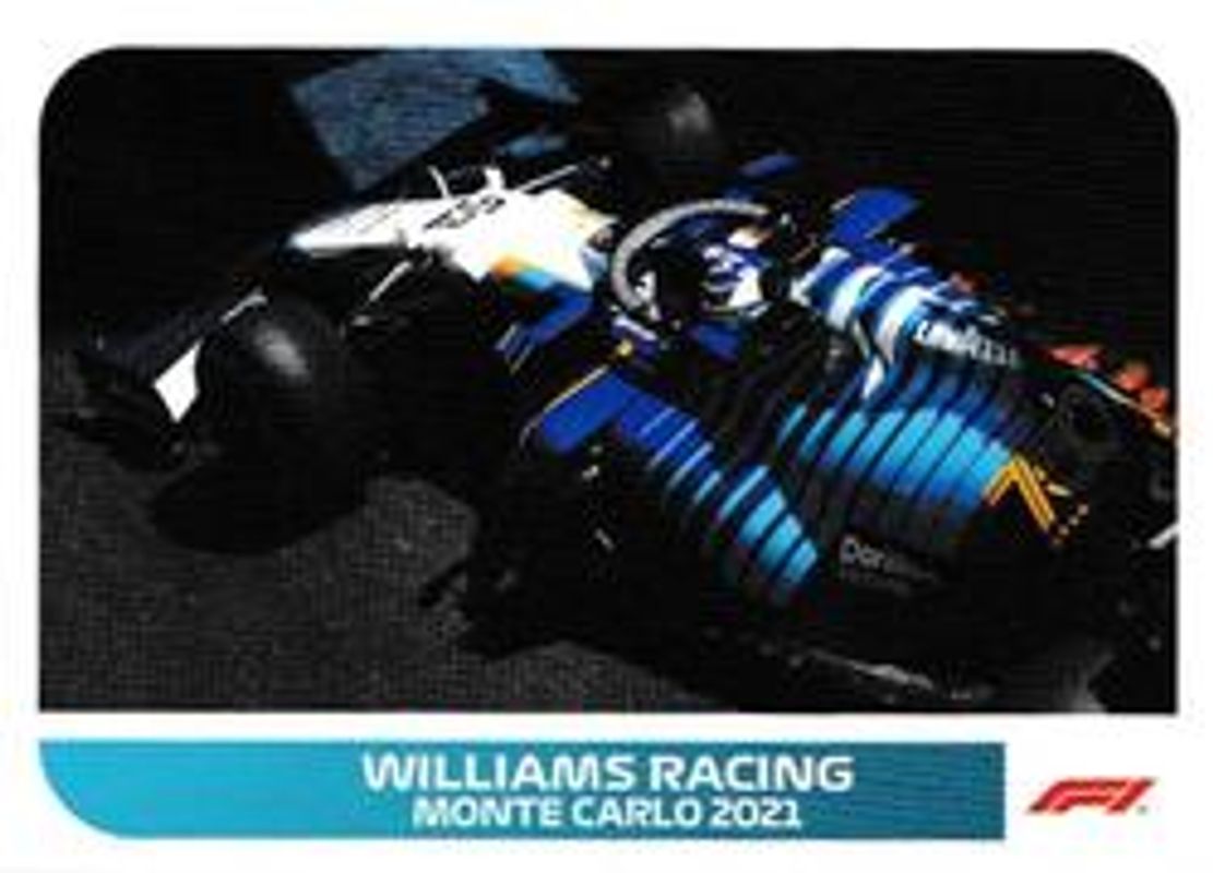 The Williams Racing 2021 Topps Formula 1 Stickers #115 Base card is 1 of 2 Williams Racing's card variations in the 2021 Topps Formula 1 Stickers set being tracked by Sports Card Investor, including Base.