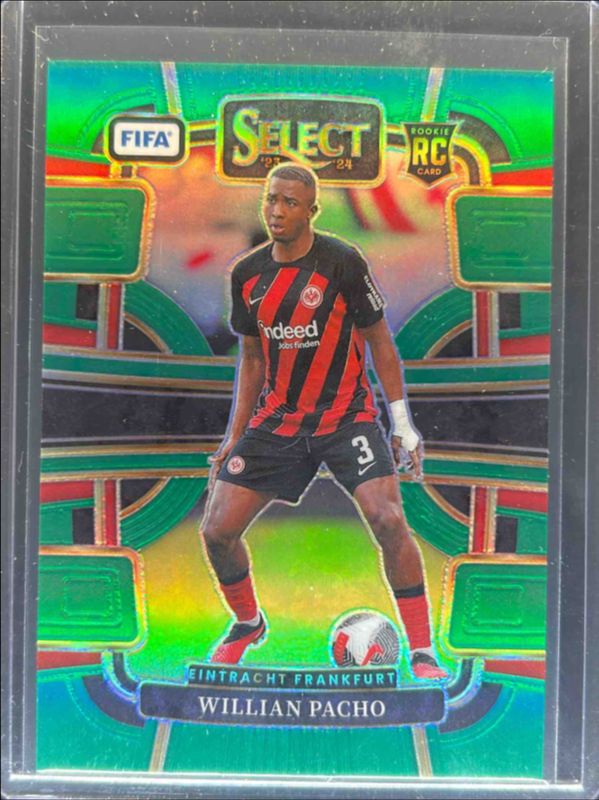 The Willian Pacho 2023 Select FIFA #32 Green /5 card is 1 of 24 Willian Pacho's card variations in the 2023 Select FIFA set being tracked by Sports Card Investor, including Base, Blue, Checkerboard, Green Ice, and Multi Color.