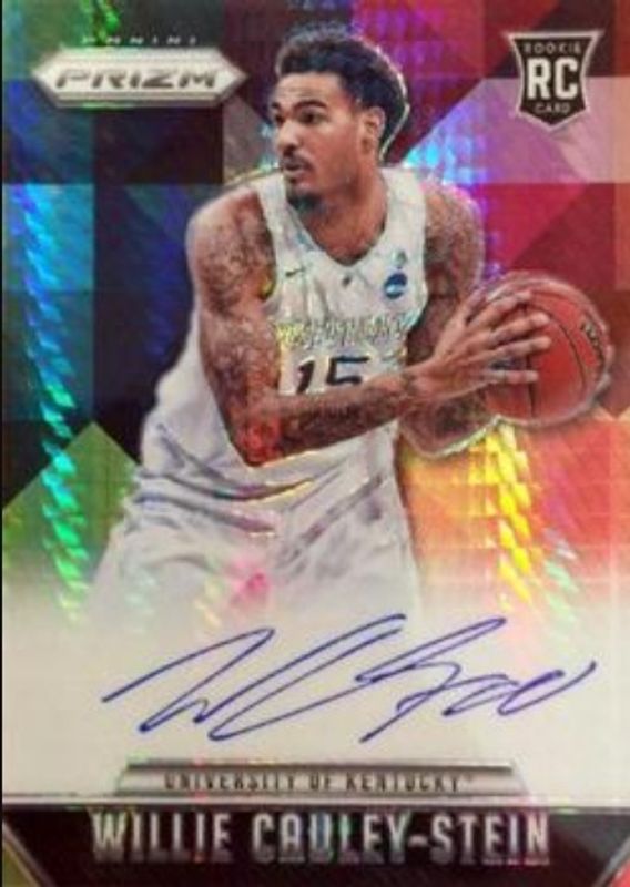 The Willie Cauley-Stein 2015 Prizm #RS-WCS Rookie Signatures - Hyper /10 card is 1 of 25 Willie Cauley-Stein's card variations in the 2015 Prizm set being tracked by Sports Card Investor, including Base, Flash, Green, Orange Wave, and Red White Blue.