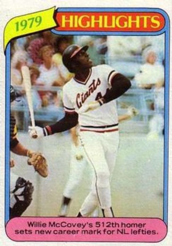 The Willie McCovey 1980 Topps #2 Base card is 1 of 2 Willie McCovey's card variations in the 1980 Topps set being tracked by Sports Card Investor, including Base.