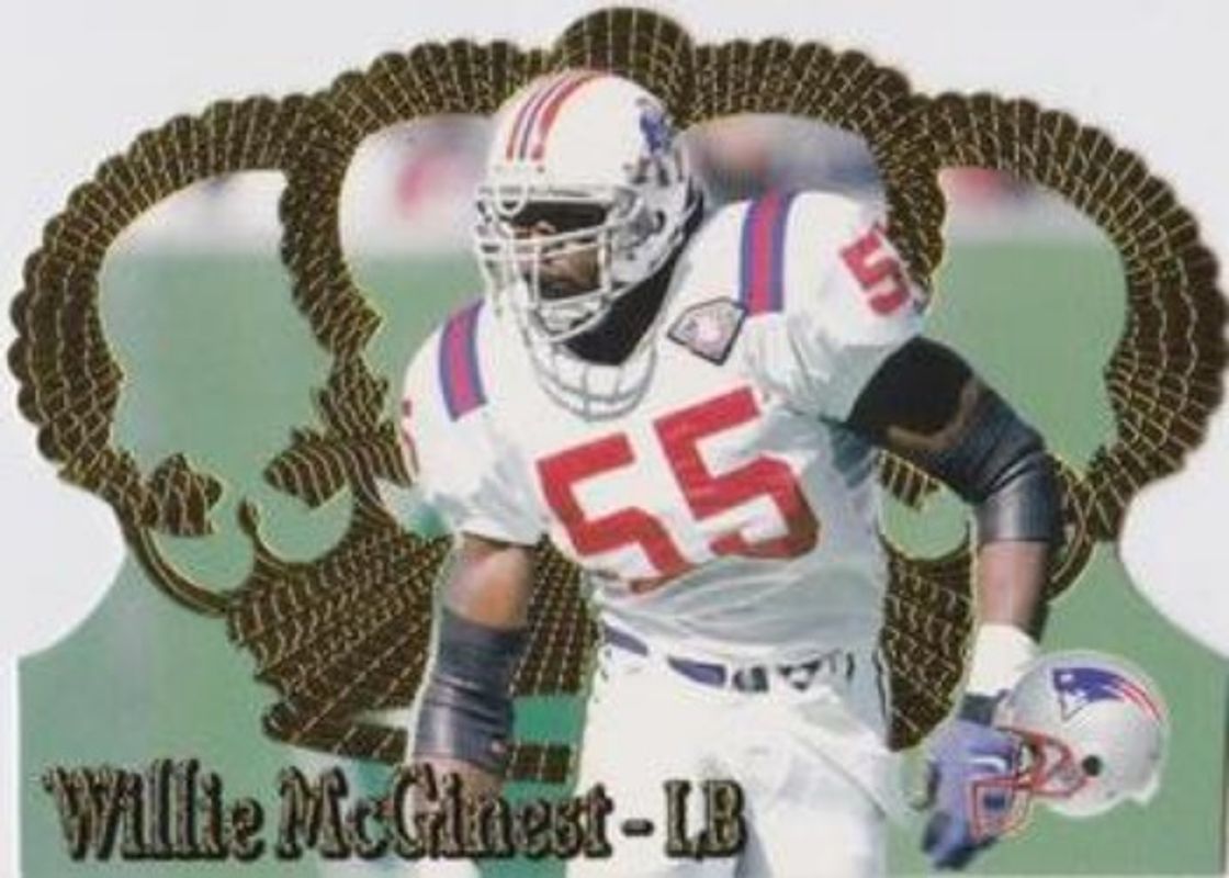 The Willie McGinest 1995 Pacific Crown Royale #113 Base card is 1 of 3 Willie McGinest's card variations in the 1995 Pacific Crown Royale set being tracked by Sports Card Investor, including Blue Holofoil, and Copper.