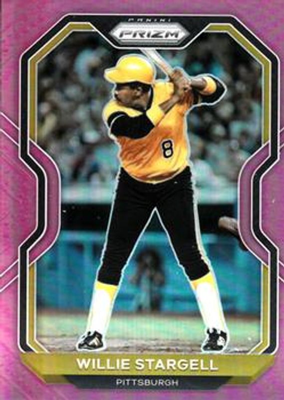 The Willie Stargell 2021 Prizm #125 Pink card is 1 of 43 Willie Stargell's card variations in the 2021 Prizm set being tracked by Sports Card Investor, including Base, Blue, Blue Velocity, Carolina Blue, and Cosmic Haze.