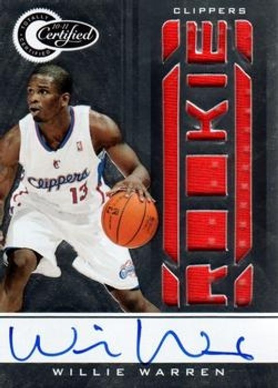 The Willie Warren 2010 Totally Certified #183 Base /1849 Rookie card is 1 of 6 Willie Warren's card variations in the 2010 Totally Certified set being tracked by Sports Card Investor, including Red Autographs /99, Blue Autographs /49, Gold Autographs /25, Green Autographs /5, and Black Autographs /1.
