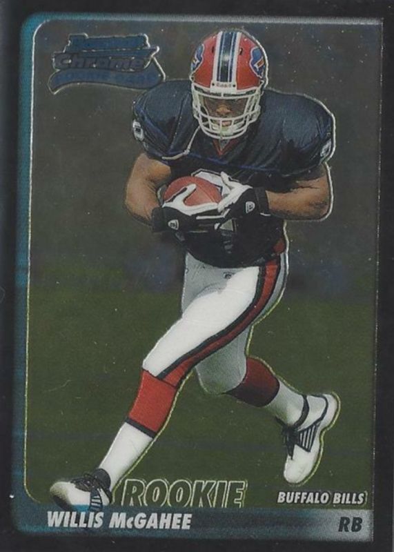 The Willis McGahee 2003 Bowman Chrome #206 Base Rookie card in Raw condition has moved up $1.41 (+88.7%) in the last 30 days and was last sold for $3.00 .