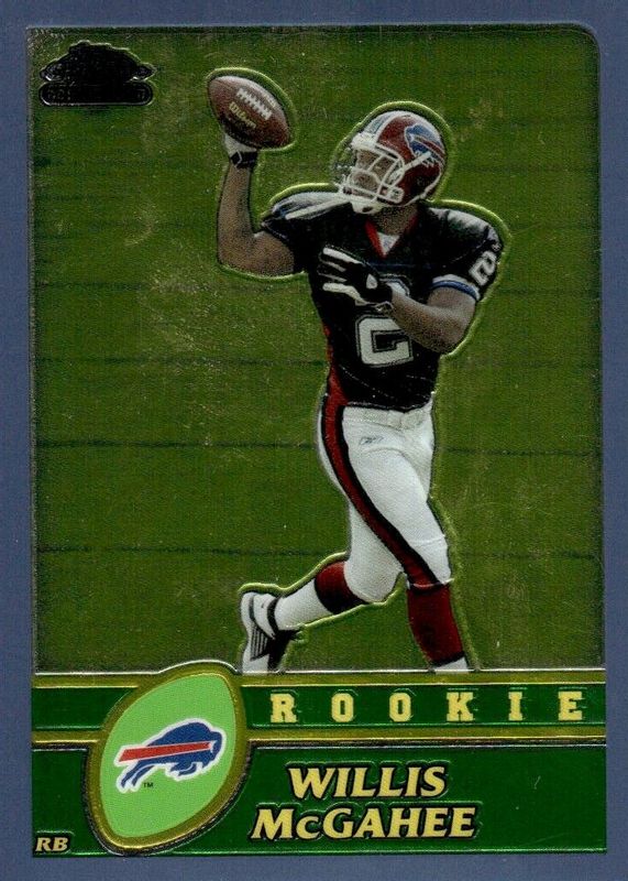 This card is 1 of 3 Willis McGahee's card variations in the 2003 Topps Chrome set being tracked by Sports Card Investor, including Black Refractor /599, and Gold X-Fractor /101.