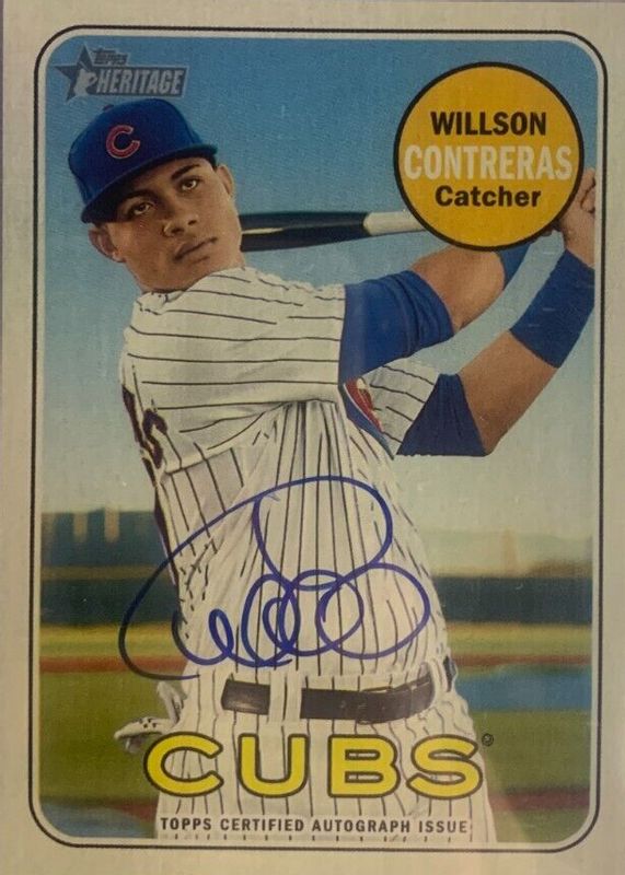 This card is 1 of 2 Willson Contreras' card variations in the 2018 Topps Heritage High Number set being tracked by Sports Card Investor, including Real One Autographs - Red Ink /69.