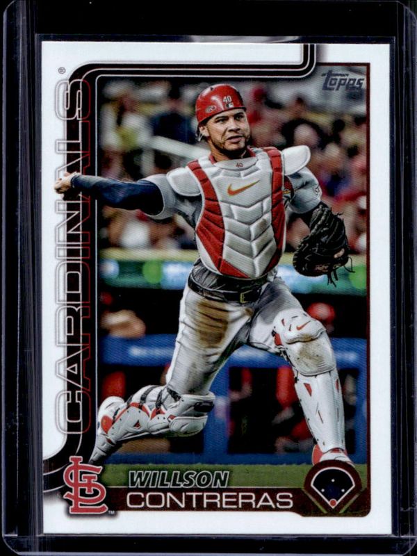 The Willson Contreras 2025 Topps #472 Base card is 1 of 73 Willson Contreras' card variations in the 2025 Topps set being tracked by Sports Card Investor, including Aqua Holo Foil, Diamante Foil, Holo Foil, Pink Diamante Foil, and Pink Holo Foil.