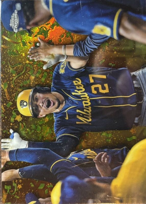 2023 Topps Chrome Update SSP Willy Adames Gold Celebracion # 32/50 Brewers