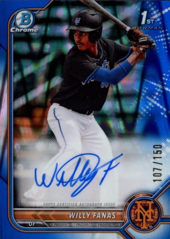 2022 Bowman Chrome Willy Fanas Blue Raywave Refractor Auto 072/150 1st Mets