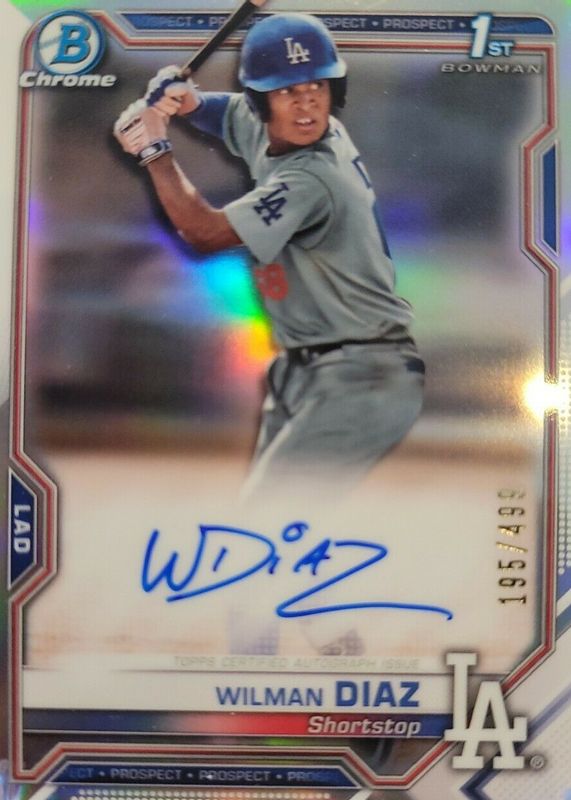 2021 Bowman Chrome Wilman Diaz Auto Refractor 1st #/499 Dodgers