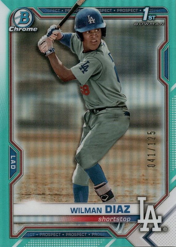 Wilman Diaz 2021 Bowman Chrome #BCP-197 Prospects - Aqua Refractor /125 (1st) RAW Price Guide