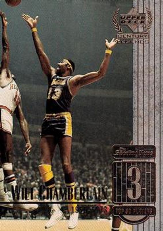 The Wilt Chamberlain 1998 Upper Deck Century Legends #3 Base card is 1 of 6 Wilt Chamberlain's card variations in the 1998 Upper Deck Century Legends set being tracked by Sports Card Investor, including Century Collection /100, All Century Team, Epic Milestones, Epic Signatures, and Epic Signatures Century /100.