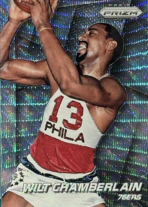 This card is 1 of 24 Wilt Chamberlain's card variations in the 2014 Prizm set being tracked by Sports Card Investor, including Base, Blue Green Mosaic, Blue Mojo, Green, and Photo Variation.