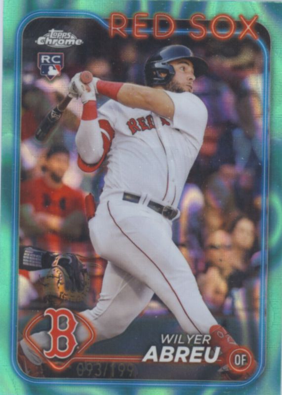 The Wilyer Abreu 2024 Topps Chrome #165 Aqua RayWave Refractor /199 Rookie card in Raw condition has not changed in price in the last 30 days and was last sold for $7.99 .