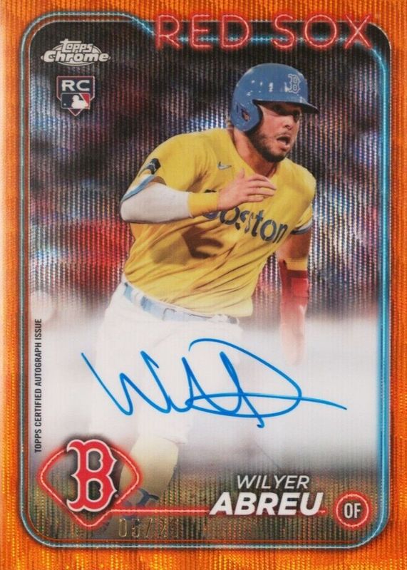 Auctions Ending Soon for Wilyer Abreu 2024 Topps Chrome #RA-WA Rookie Autographs - Orange Wave Refractor /25 RAW