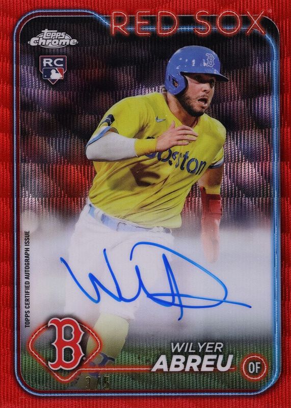 Auctions Ending Soon for Wilyer Abreu 2024 Topps Chrome #RA-WA Rookie Autographs - Red Wave Refractor /5 RAW