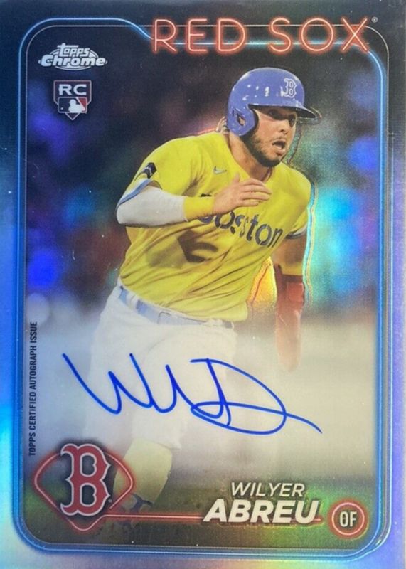 The Wilyer Abreu 2024 Topps Chrome #RA-WA Rookie Autographs - Refractor /499 card in Raw condition has not changed in price in the last 30 days and was last sold for $24.99 .