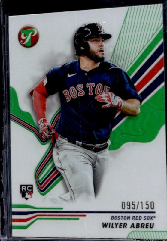 The Wilyer Abreu 2024 Topps Pristine #95 Green Refractor /150 Rookie card is 1 of 18 Wilyer Abreu's card variations in the 2024 Topps Pristine set being tracked by Sports Card Investor, including Base, Pristine Refractor, Refractor, Pristine Purple Refractor /99, and Purple Refractor /99.