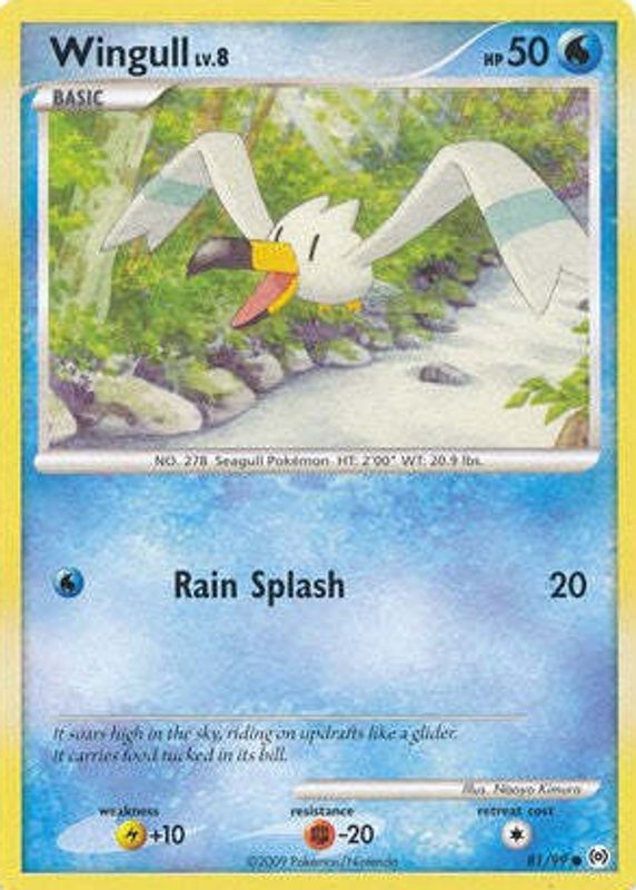 This card is 1 of 4 Wingull's card variations in the 2009 Platinum: Arceus set being tracked by Sports Card Investor, including #80/99 Base, #80/99 Reverse Holo, and #81/99 Reverse Holo.
