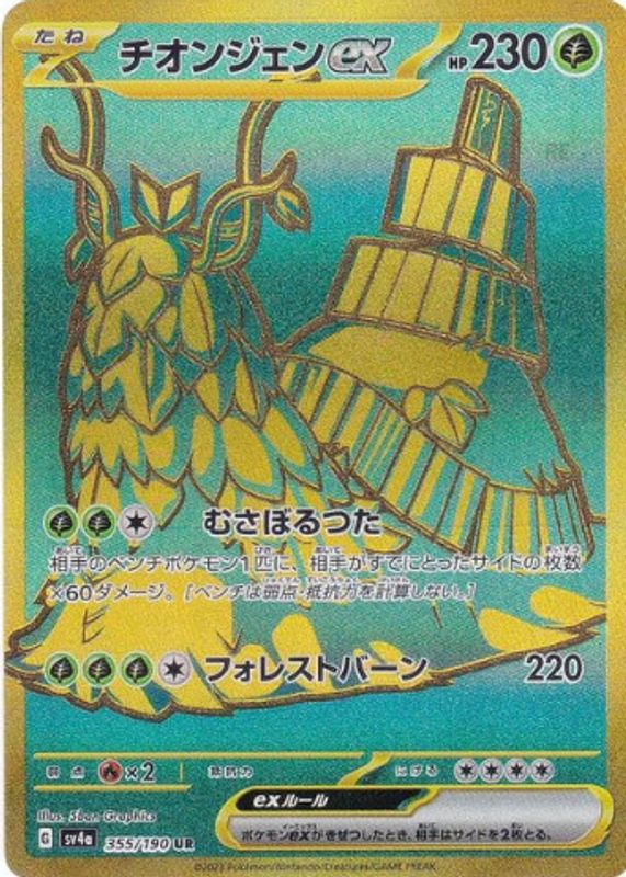 The Wo-Chien ex 2023 Japanese Scarlet & Violet: Shiny Treasure ex #355/190 Ultra Rare card in Raw TCG (Near Mint) condition has not changed in price in the last 30 days and was last sold for $5.50 .