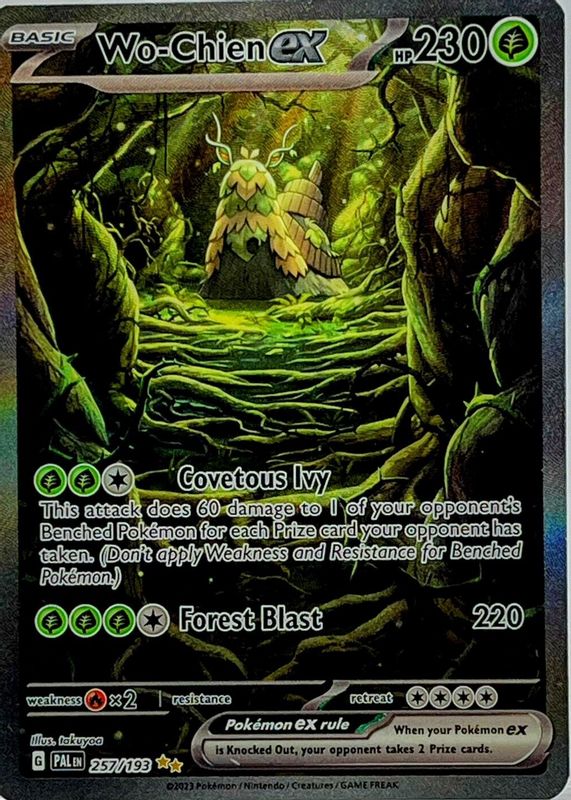 The Wo-Chien ex 2023 Scarlet & Violet: Paldea Evolved #257/193 Special Illustration Rare card in Raw TCG (Near Mint) condition has moved up $4.34 (+40.8%) in the last 30 days and was last sold for $14.99 .