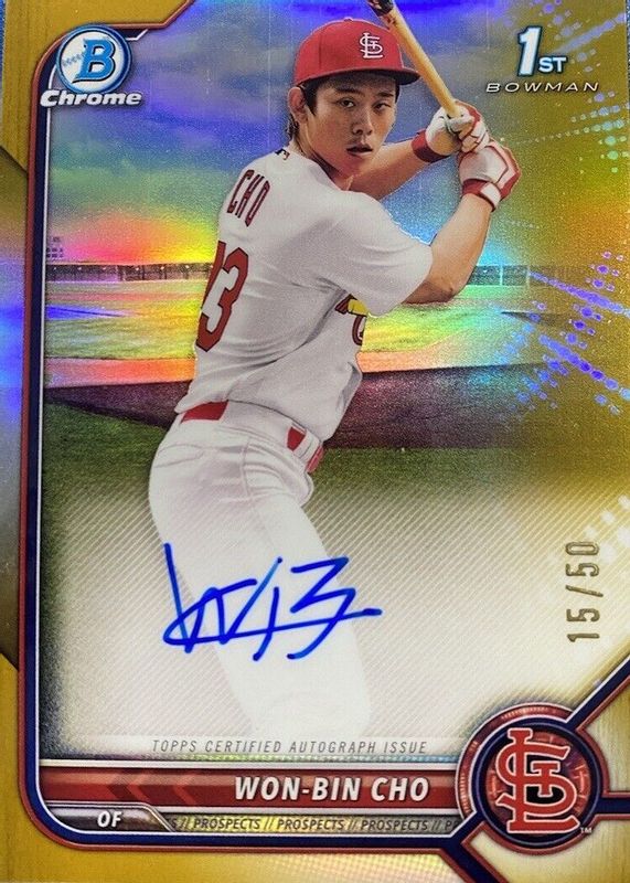 2022 Bowman Chrome Won-Bin Cho 1st Gold Refractor Auto #13/50 Cardinals