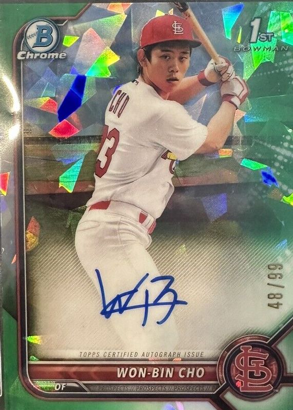 Won-Bin Cho 2022 Bowman Chrome #CPA-WC Prospect Auto - Green Atomic Refractor /99 (1st) RAW Price Guide