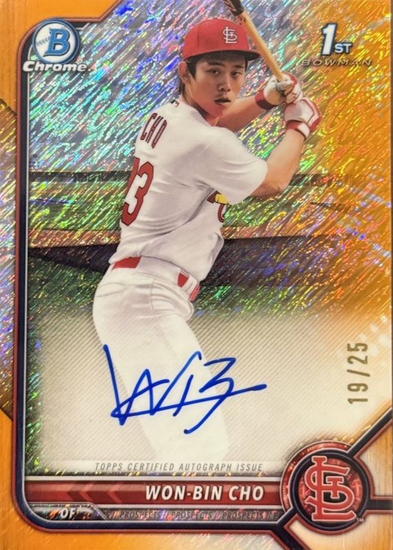 Won-Bin Cho 2022 Bowman Chrome #CPA-WC Prospect Auto - Orange Shimmer Refractor /25 (1st) RAW Price Guide