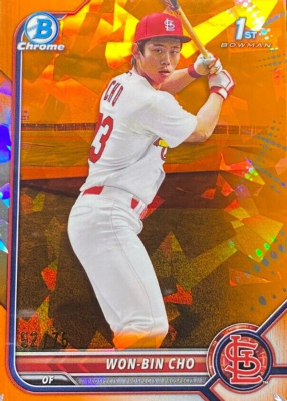 This card is 1 of 7 Won-Bin Cho's card variations in the 2022 Bowman Chrome Sapphire Edition set being tracked by Sports Card Investor, including Prospects (1st), Prospects - Aqua /99 (1st), Prospects - Yellow /50 (1st), Prospects - Purple /25 (1st), and Prospects - Red /5 (1st).