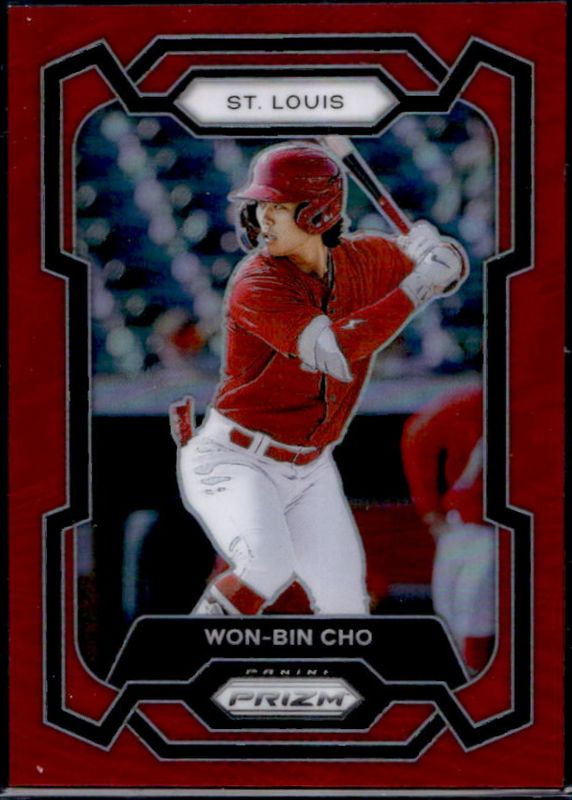 The Won-Bin Cho 2024 Prizm #152 Red /299 card is 1 of 38 Won-Bin Cho's card variations in the 2024 Prizm set being tracked by Sports Card Investor, including Base, Blue Ice, Green, Green Ice, and Pink Ice.