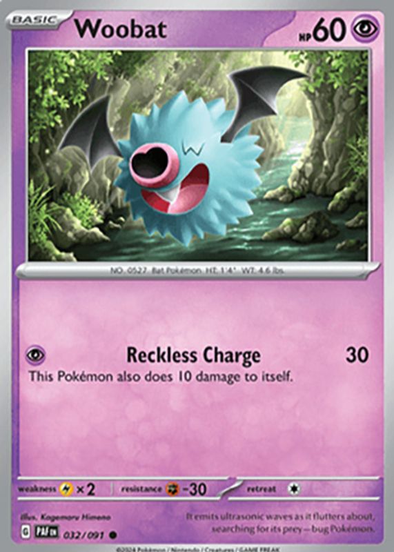Woobat 2024 Scarlet & Violet: Paldean Fates #032/091 Base RAW TCG (NEAR MINT) Price Guide