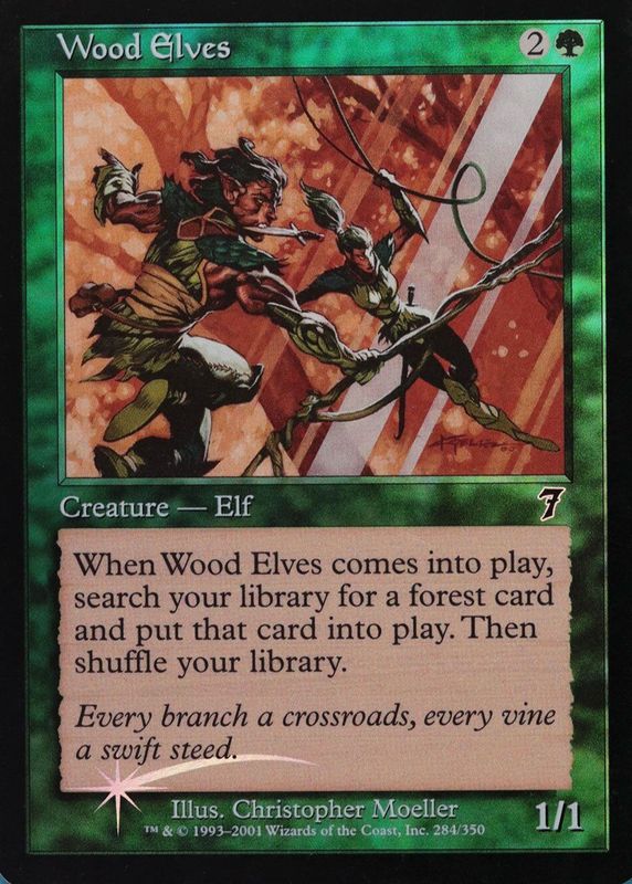The Wood Elves 2001 Seventh Edition #284 Foil card in Raw TCG (Lightly Played) condition has not changed in price in the last 30 days and was last sold for $24.26 .