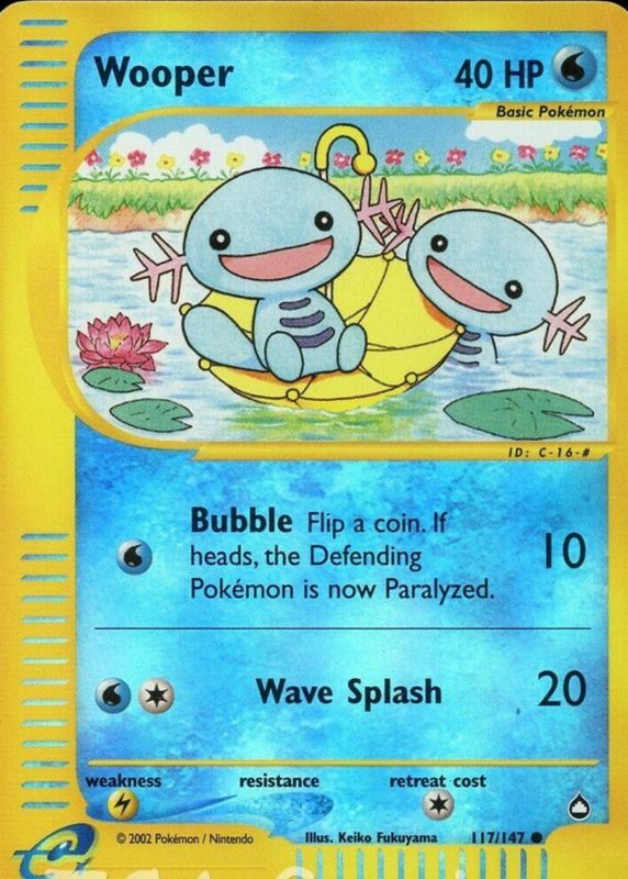 The Wooper 2003 Aquapolis #117/147 Reverse Holo card in Raw TCG (Near Mint) condition has not changed in price in the last 30 days and was last sold for $82.29 .
