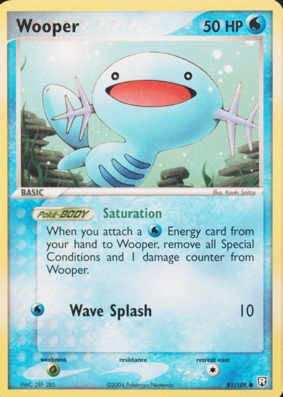 The Wooper 2004 EX: Team Rocket Returns #081/109 Base card in Raw TCG (Near Mint) condition has moved down -$0.90 (-23.1%) in the last 30 days and was last sold for $3.00 .