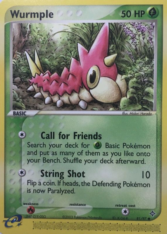 The Wurmple 2003 EX: Dragon #81/97 Base card in Raw TCG (Near Mint) condition has moved up $0.23 (+16.1%) in the last 30 days and was last sold for $1.69 .