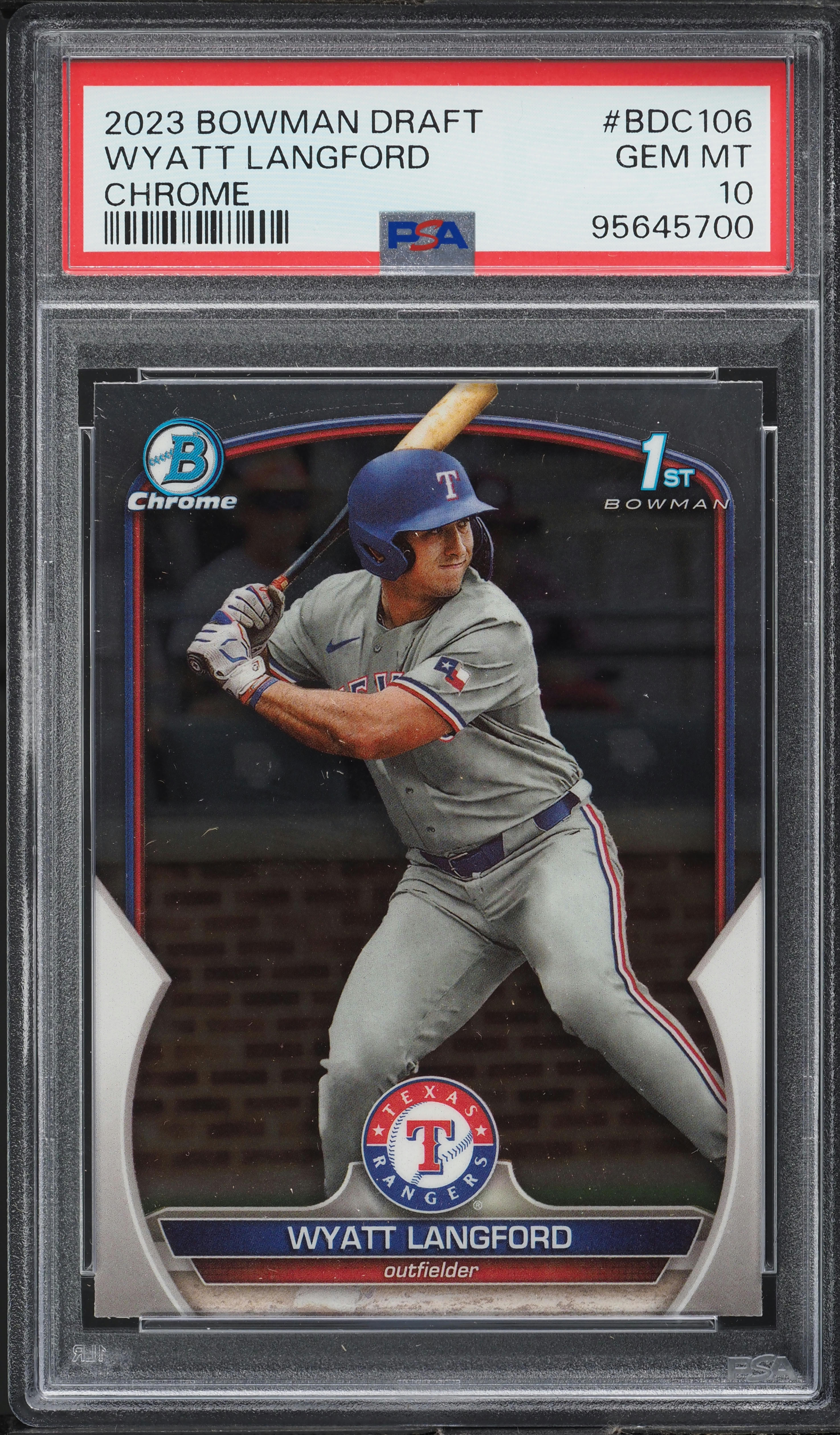 The Wyatt Langford 2023 Bowman Draft #BDC-106 Chrome (1st) card in Raw condition has moved up $0.49 (+14.0%) in the last 30 days and was last sold for $4.00 .