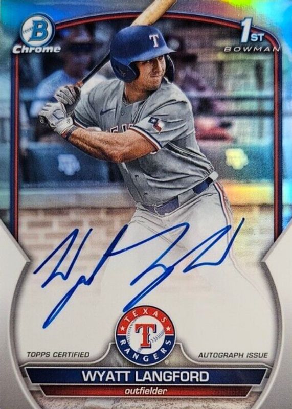 2023 Bowman Draft Wyatt Langford Chrome Auto Refractor 1st #/499 Rangers