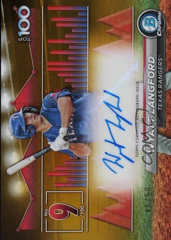 WYATT LANGFORD 2024 BOWMAN CHROME SCOUTS TOP 100 GOLD RANGERS AUTO /50 Q0208