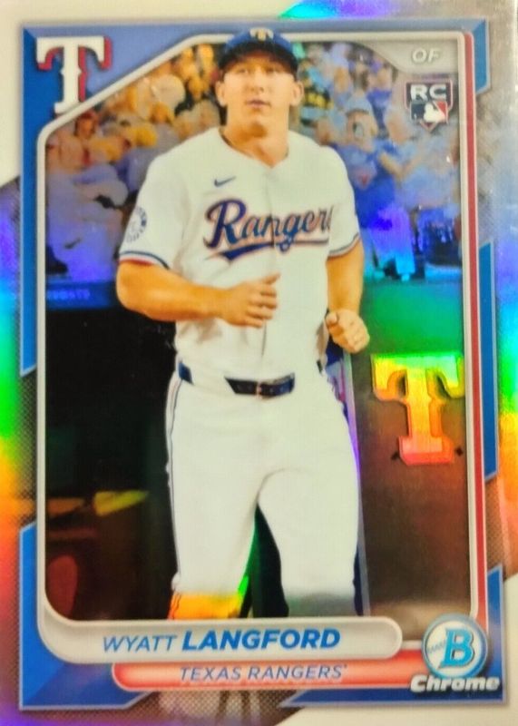 The Wyatt Langford 2024 Bowman Chrome #71 Image Variation Rookie card in Raw condition has not changed in price in the last 30 days and was last sold for $24.50 .