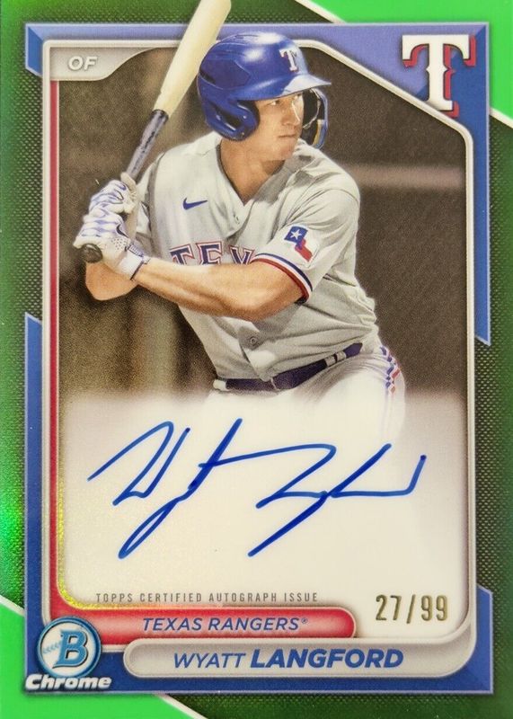 Wyatt Langford 2024 Bowman #CPA-WLA Chrome Prospect Auto - Green Refractor /99 Rookie RAW Price Guide