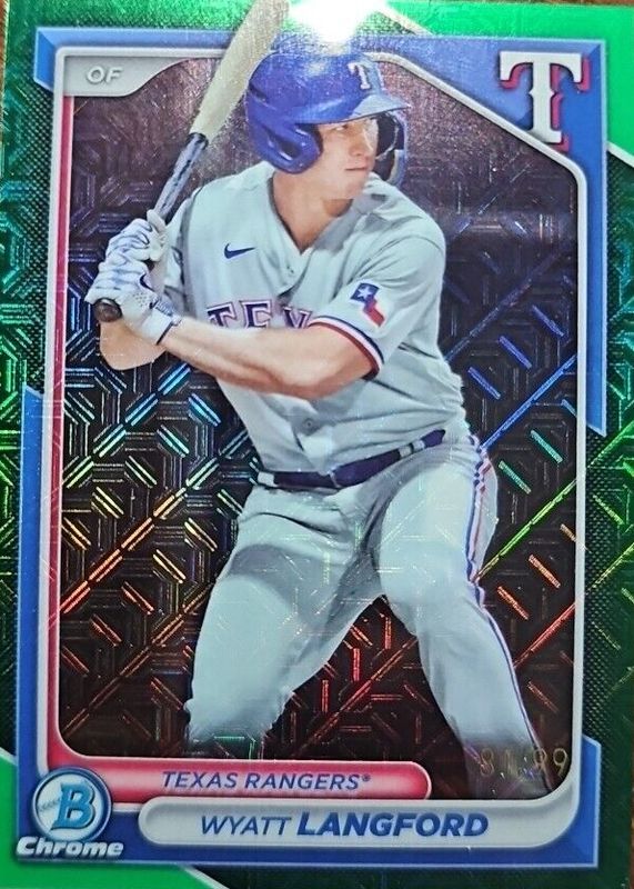 2024 Bowman Chrome Wyatt Langford Green Shimmer 81/99 Texas Rangers #BCP-64