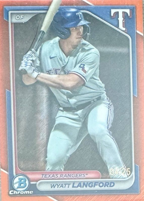 Wyatt Langford 2024 Bowman #BCP-64 Chrome Prospects - Orange Shimmer Refractor /25 Rookie RAW Price Guide