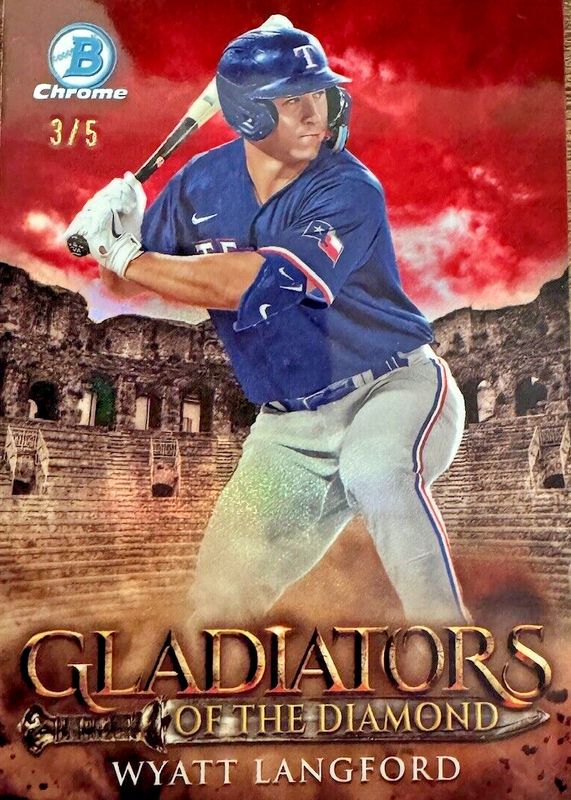 Wyatt Langford 2024 Bowman #GOTD-12 Gladiators of the Diamond - Red Refractor /5 Rookie RAW Price Guide
