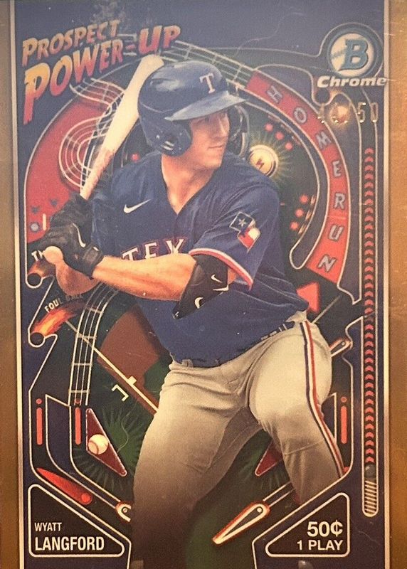 2024 Bowman Chrome Wyatt Langford PROSPECT POWER-UP GOLD /50 RANGERS #PP-3