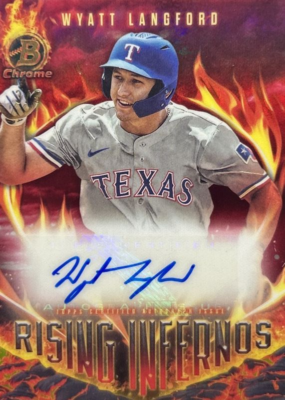 Auctions Ending Soon for Wyatt Langford 2024 Bowman #RIA-WL Rising Infernos Autographs - Red Refractor /5 Rookie RAW