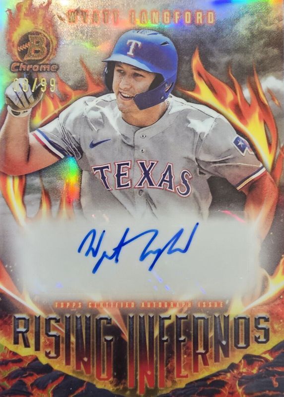 Wyatt Langford 2024 Bowman Chrome Prospect Rising Infernos Rookie RC Auto 10/99