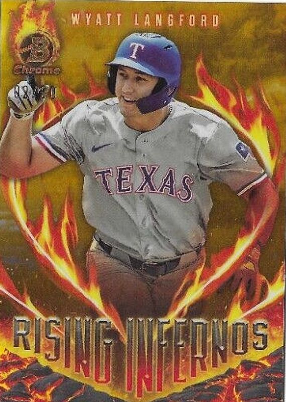 2024 Bowman Chrome Wyatt Langford Rising Infernos Gold 32/50 Rangers #RI-13